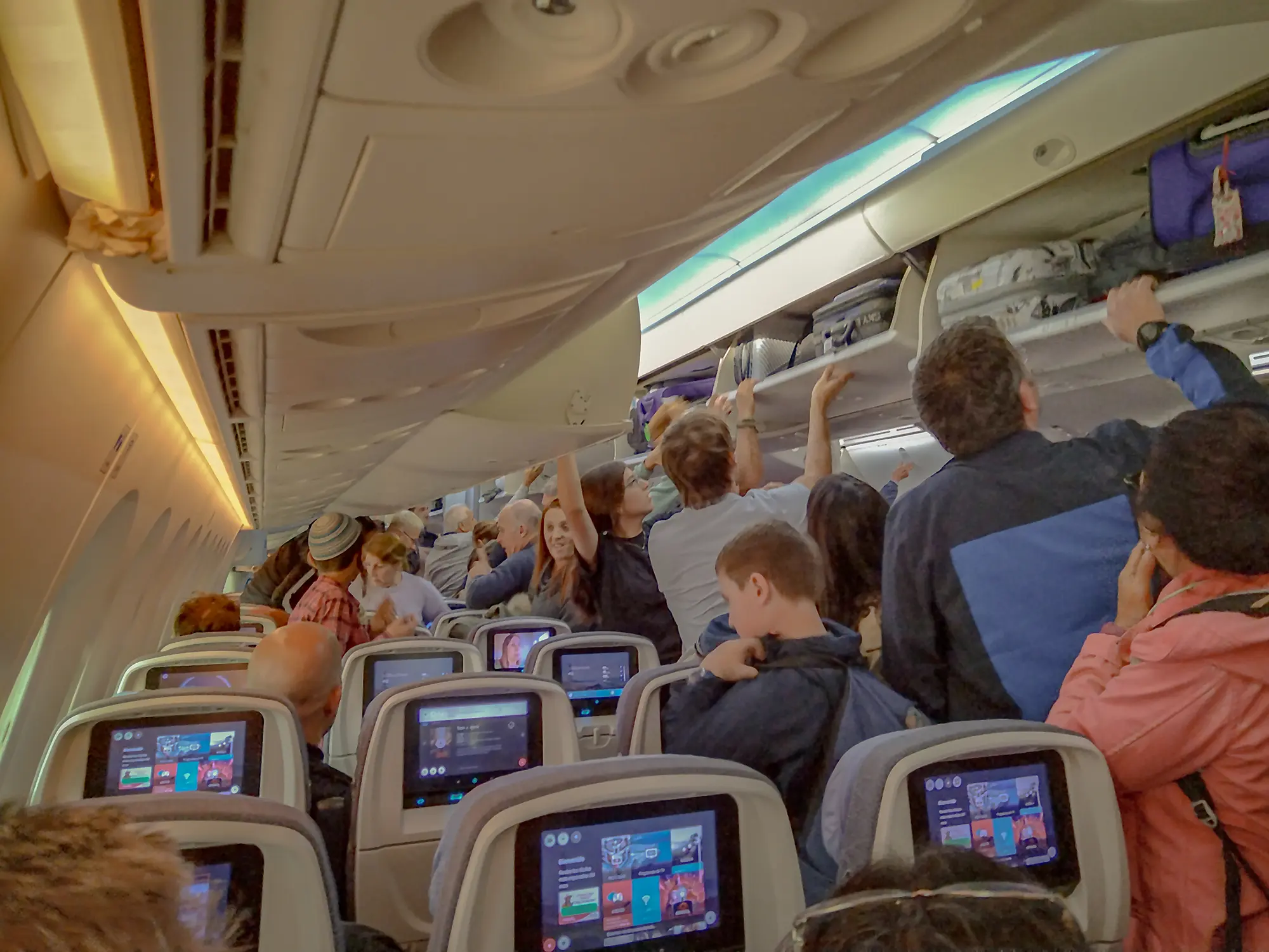 When early jumpers clog the aisle, passengers who genuinely should be exiting first (those seated ahead, or those with tight connections) get trapped behind a wall of backpacks and elbows. Cabin crew repeatedly ask passengers to stay seated until their row can exit, but etiquette has quietly collapsed in the race for overhead-bin dominance.