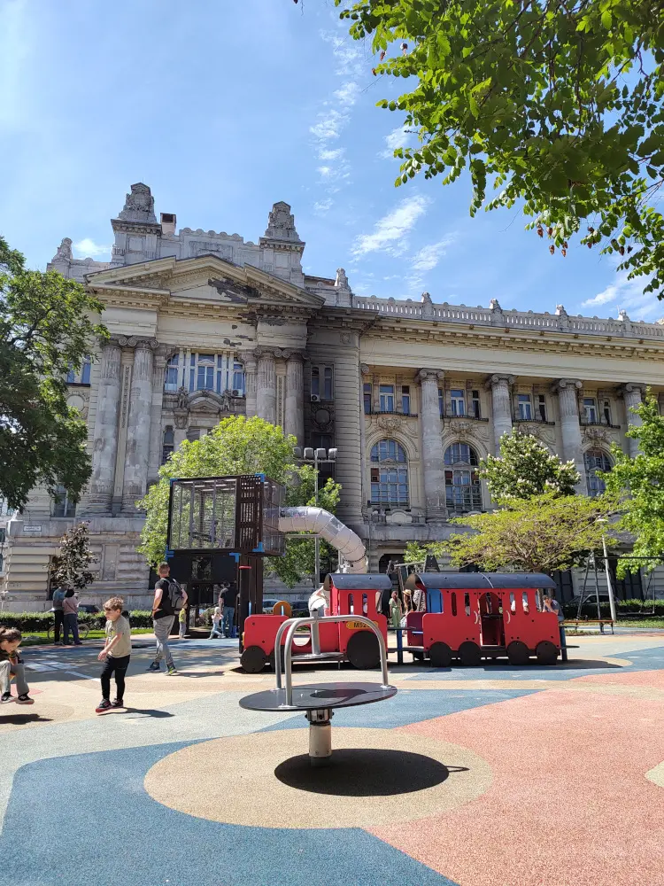 Overlooking the playground stands the grand Hungarian Ministry of Agriculture, a Neo-Renaissance masterpiece that adds a touch of elegance to the square. Its ornate façade, tall columns, and sculpted details make it one of the most beautiful government buildings in the city. Together, the playground and the Ministry of Agriculture capture the essence of Pest – a place where history, architecture, and daily life blend seamlessly.