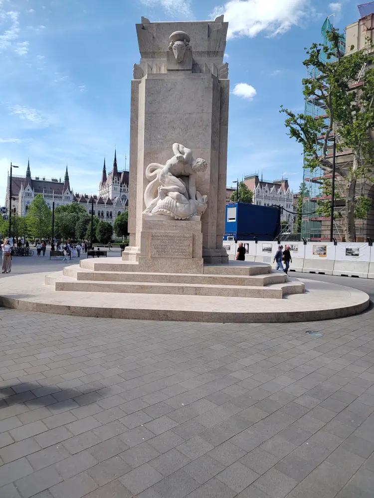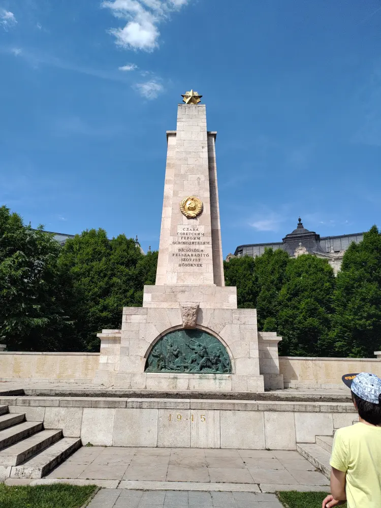 As we walked closer to the Hungarian Parliament Building, we passed two striking monuments in Liberty Square, each telling a very different story from Budapest’s complex history. The first was the Soviet War Memorial, an obelisk honoring the Soviet soldiers who died liberating Hungary from Nazi occupation in 1945.