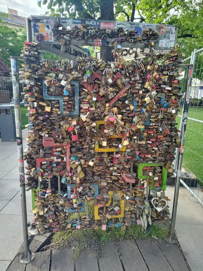 As we continued our Budapest walking tour, we came across a colorful and unexpected sight – the Love Locks Wall near Liberty Square. I had no idea that such a love lock attraction existed in Budapest!