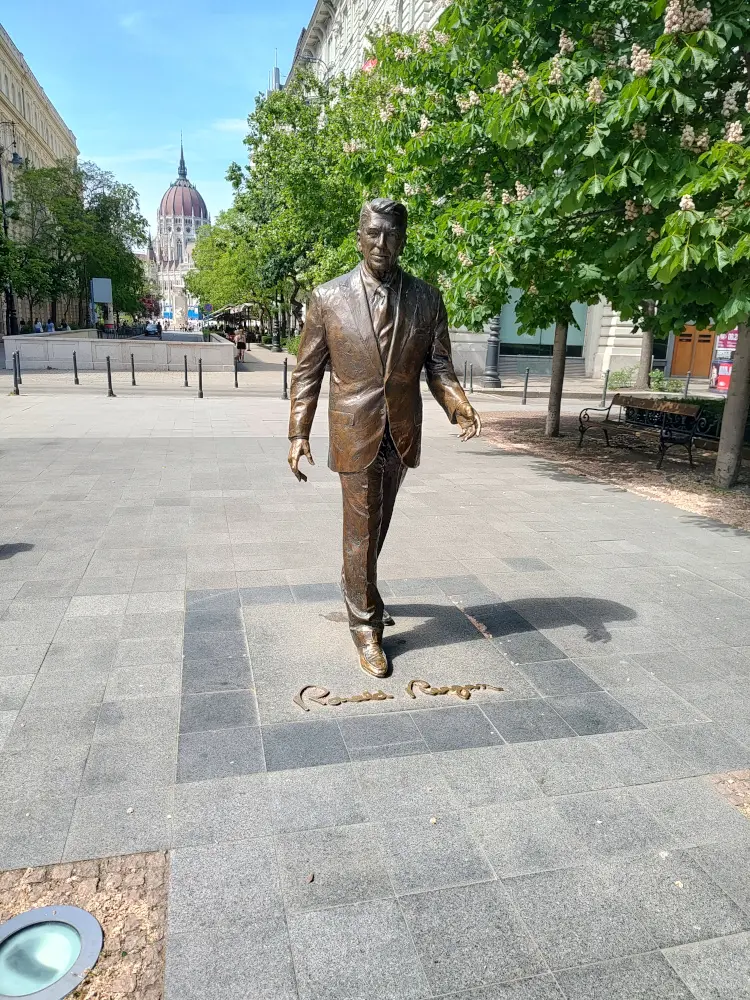 Just a few steps away, we found the statue of Ronald Reagan, symbolizing Hungary’s journey toward democracy and freedom. Set against the stunning backdrop of the Parliament dome, this bronze statue of the former U.S. president has become a popular photo spot for visitors.